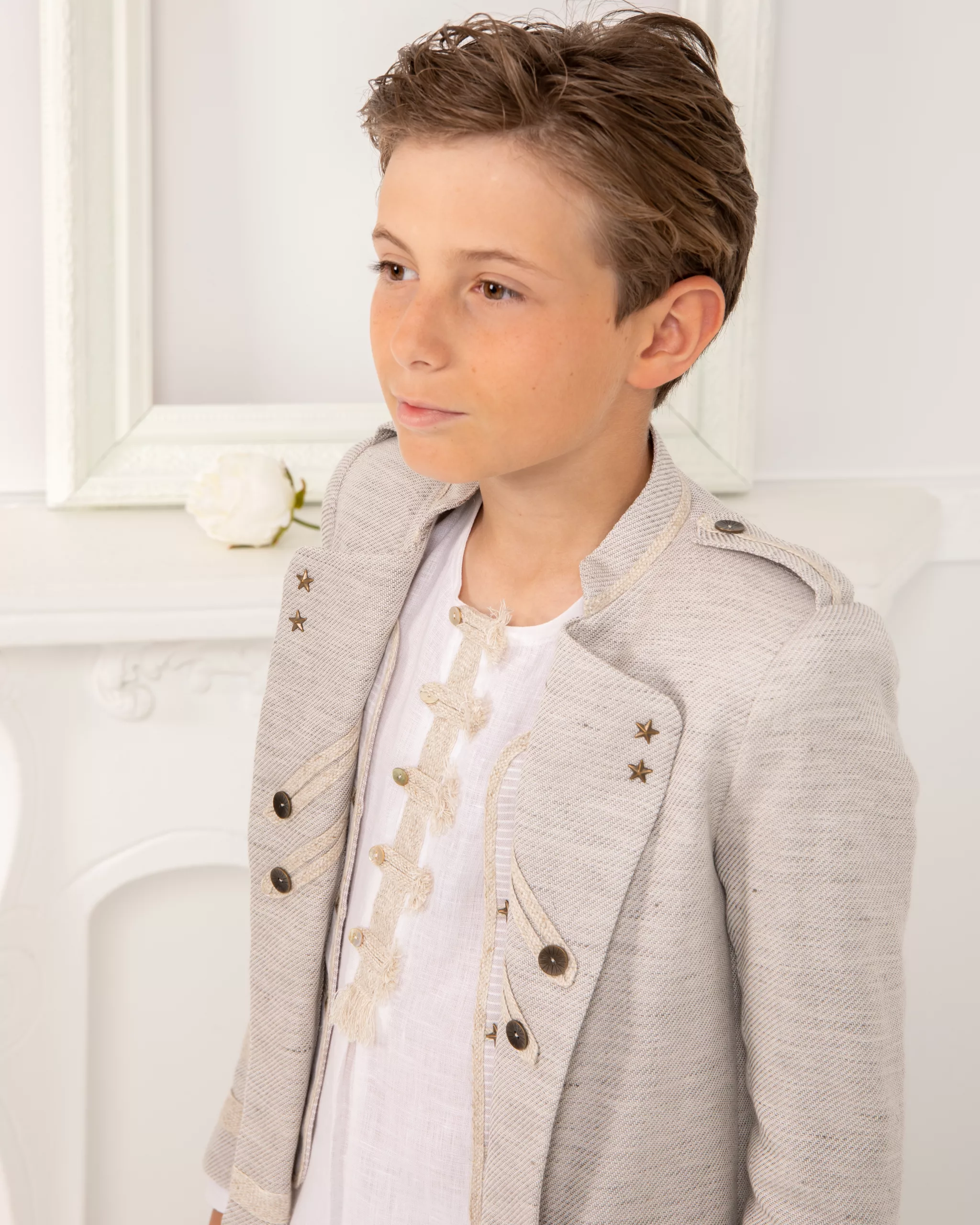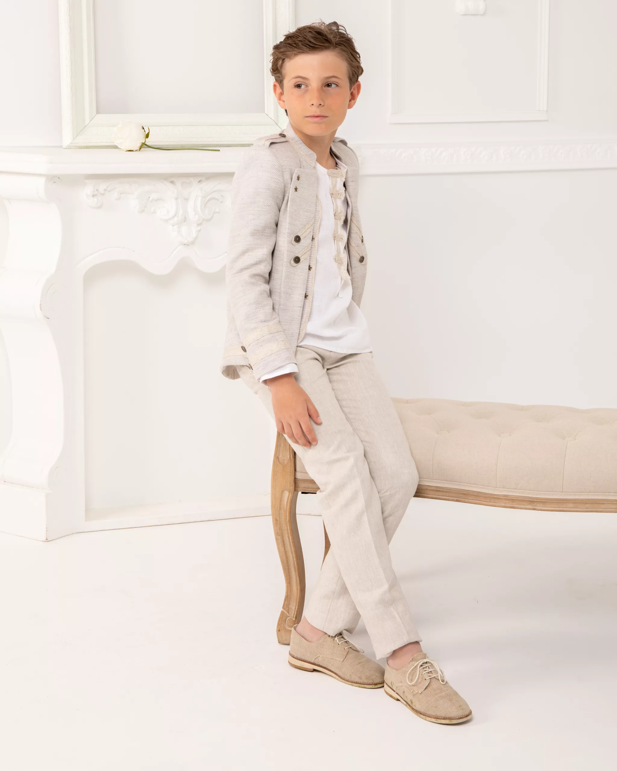 • Vestidos y trajes a medida: Cada prenda se solicita según la talla específica de tu hijo/a, asegurando que luzca impecable.